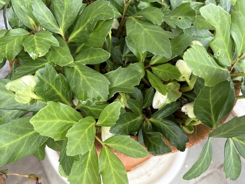 クリスマスローズ ダブル開花、ラックス蕾上がる