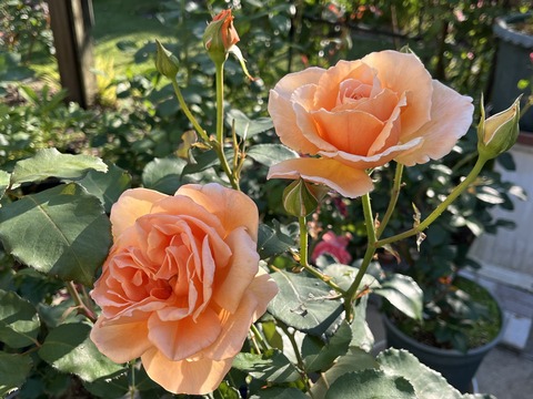 つるバラ剪定開始、シエルブリエ&ファビュラス、宴、アプリコットネクター&ストック