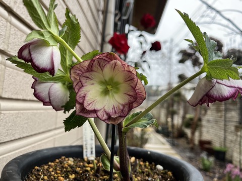 クリスマスローズ バイカラー開花、ラックス蕾膨らむ