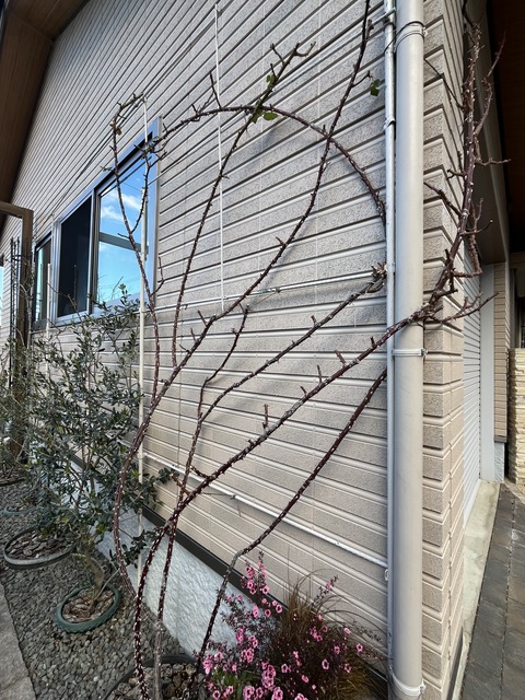 1月末、つるバラ剪定進む。アンスンエンシスが眩しい?