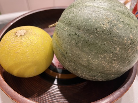 お早うございます(^^)/つれあいが大事に育てた夕張メロンは700gで、落下?、コロたんも?夕張メロンは、色づいたものの味は無し?仕方なくお漬物にレシピ···