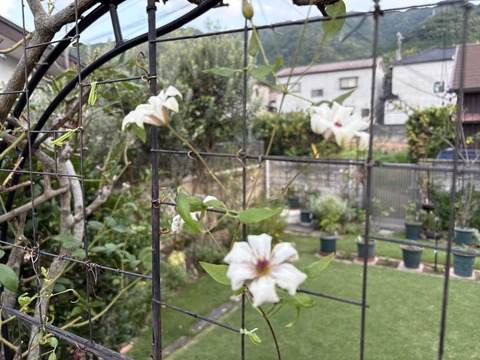 初物の筍、クレマチス白雪姫開花?は強風で散々